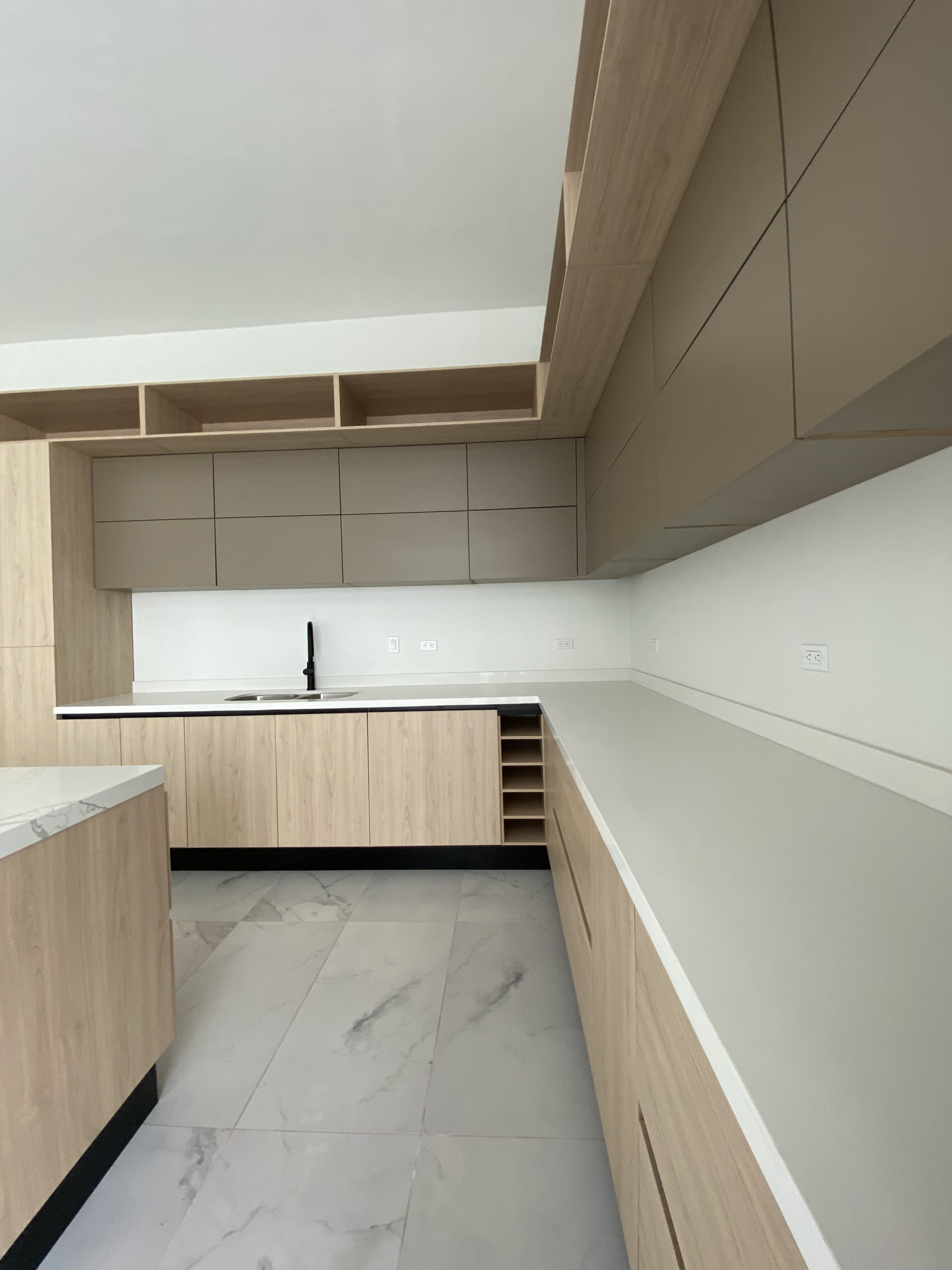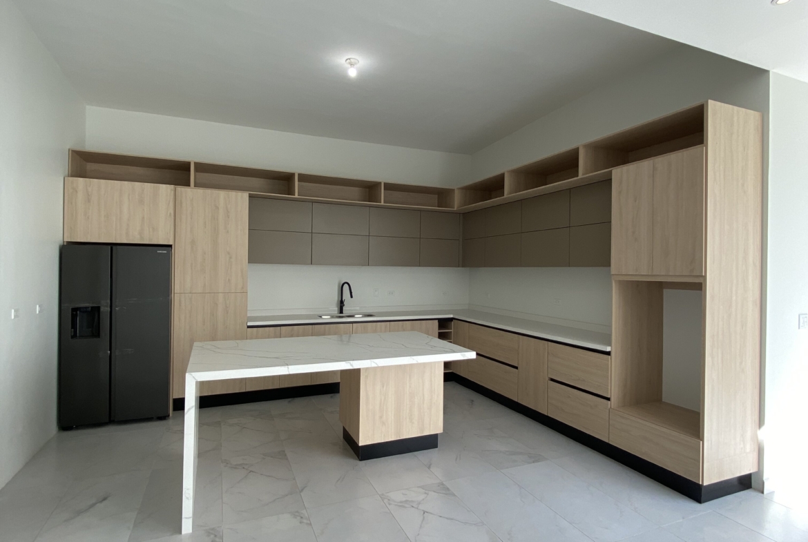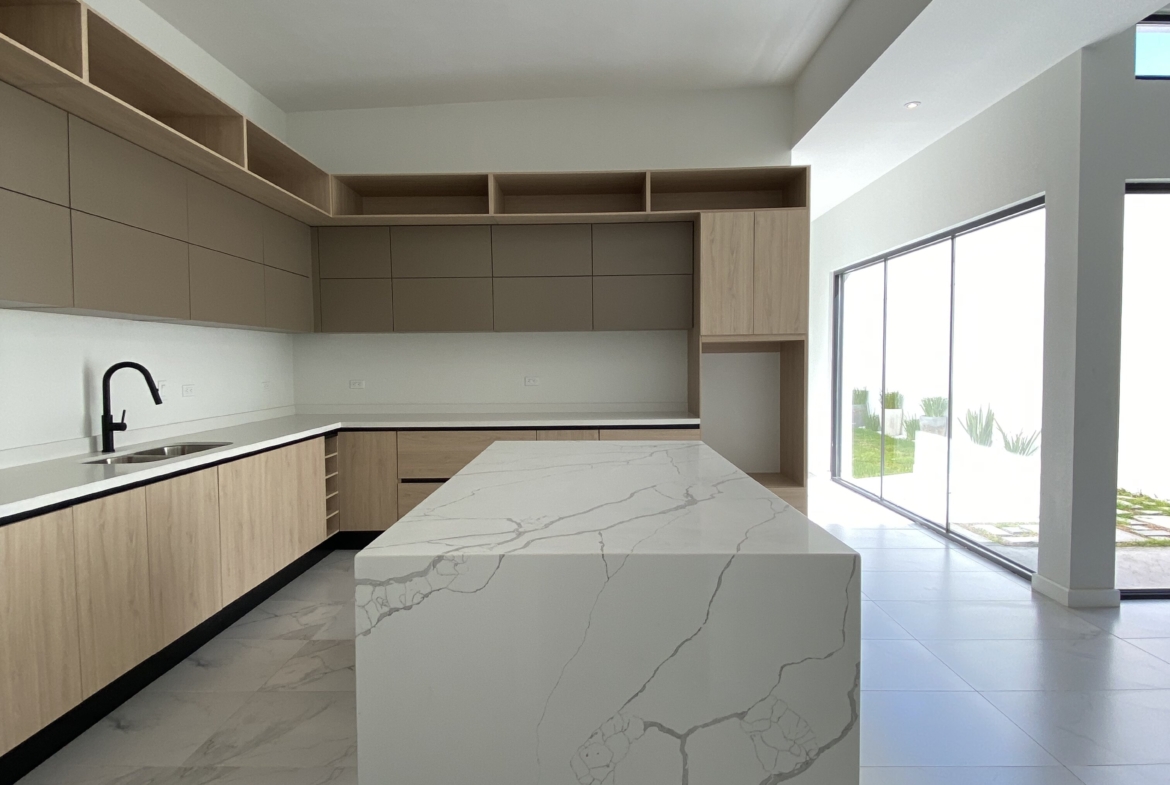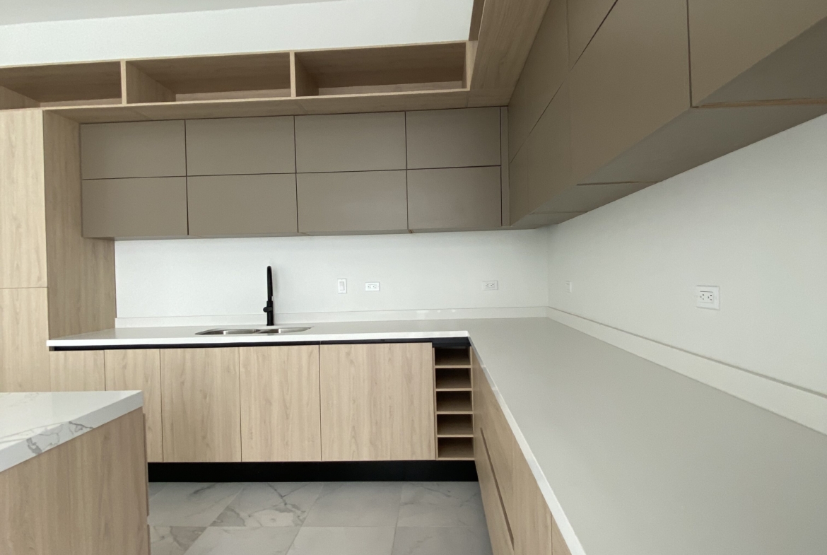 Cocina integral con cubierta de cuarzo y alacena