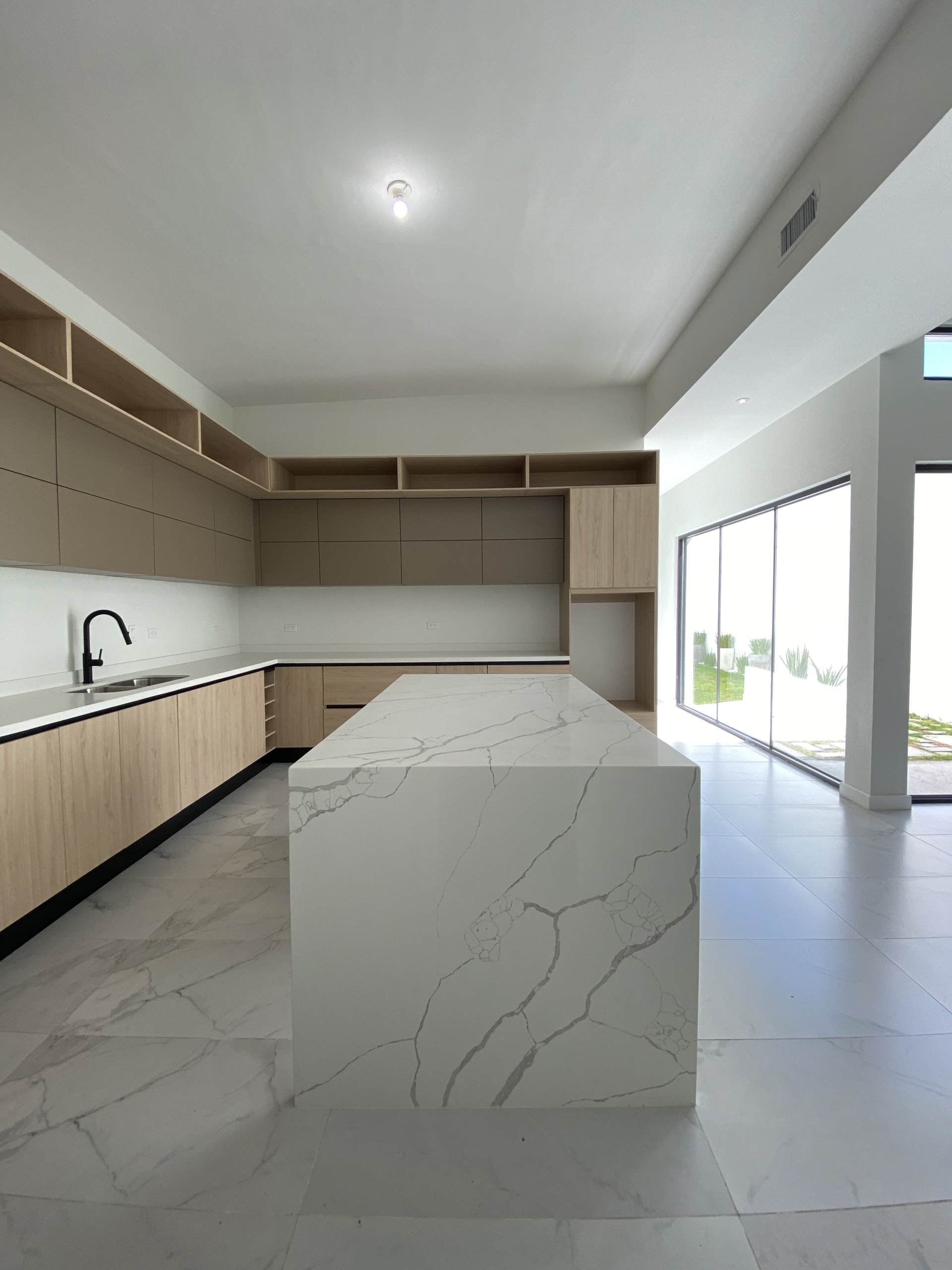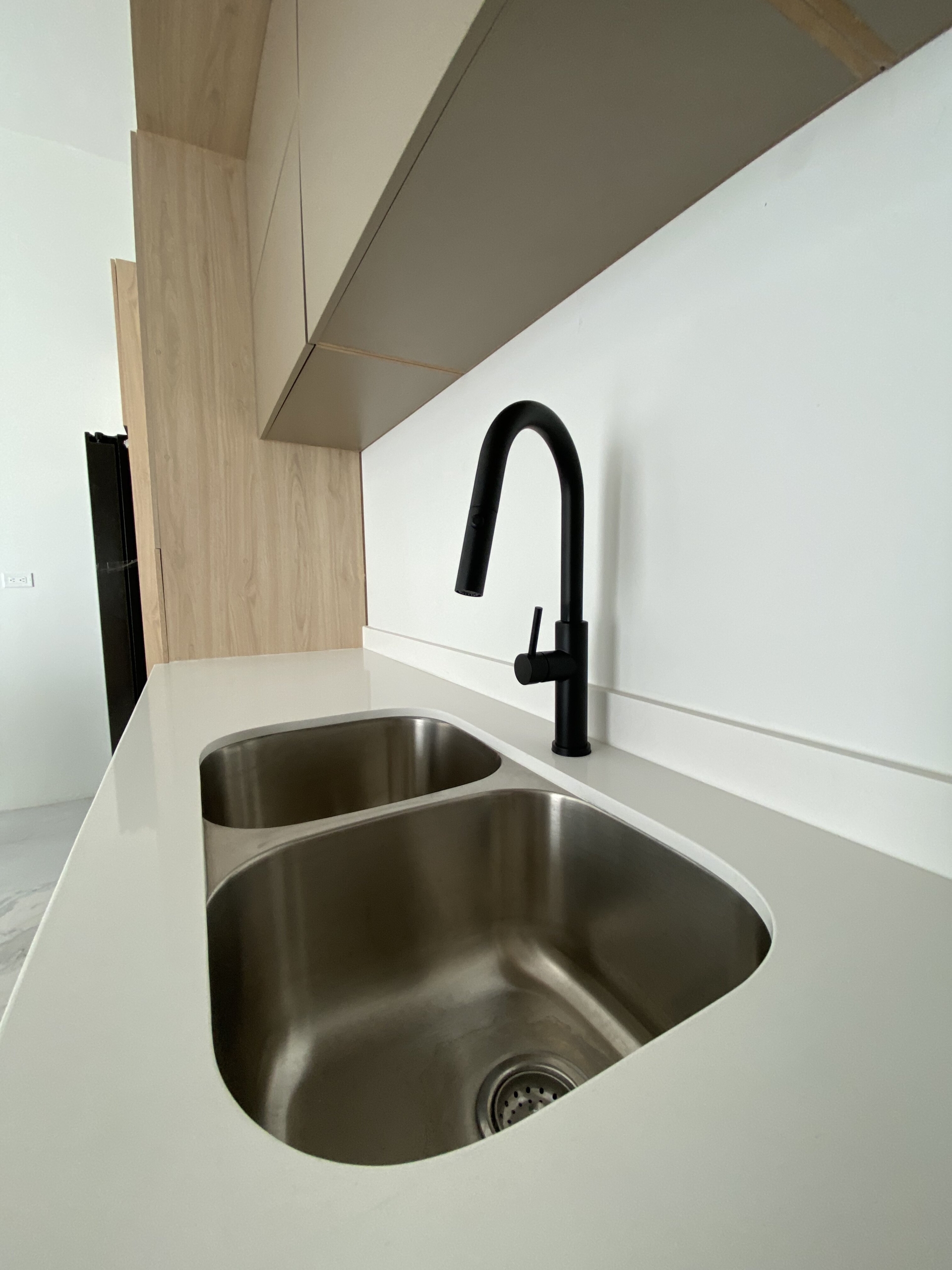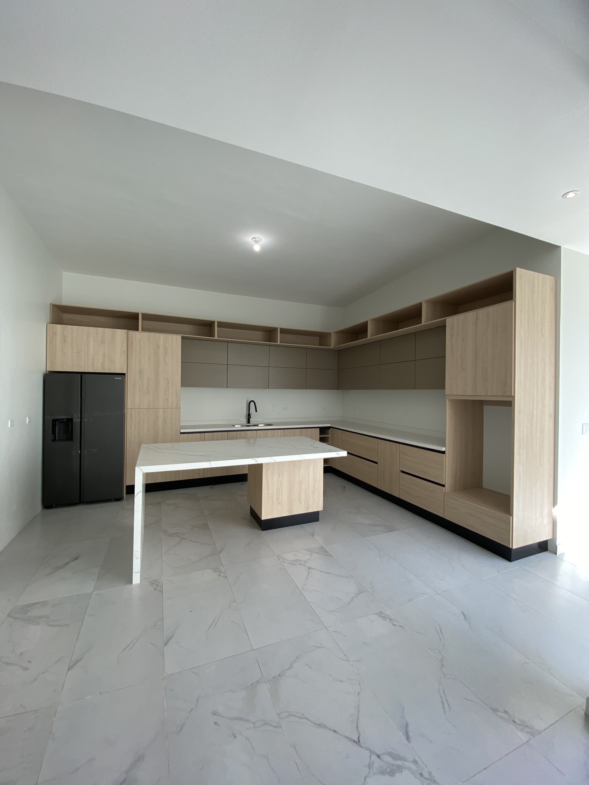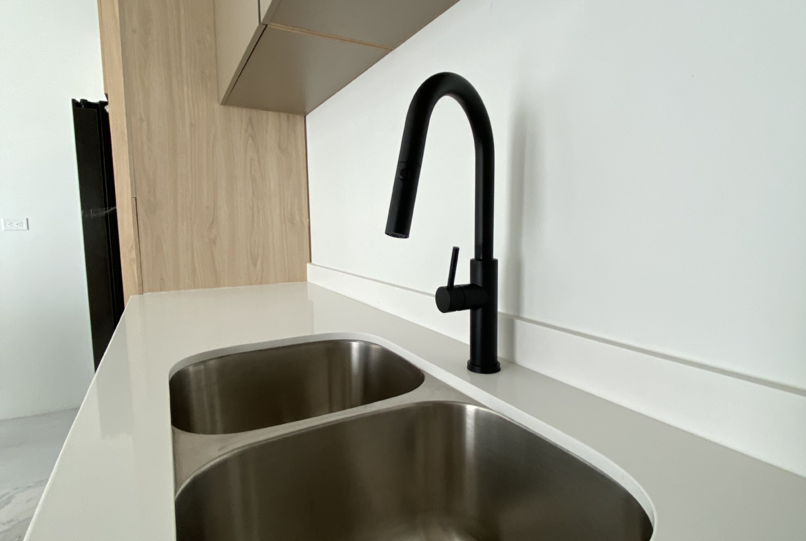 Cocina integral con cubierta de cuarzo y alacena