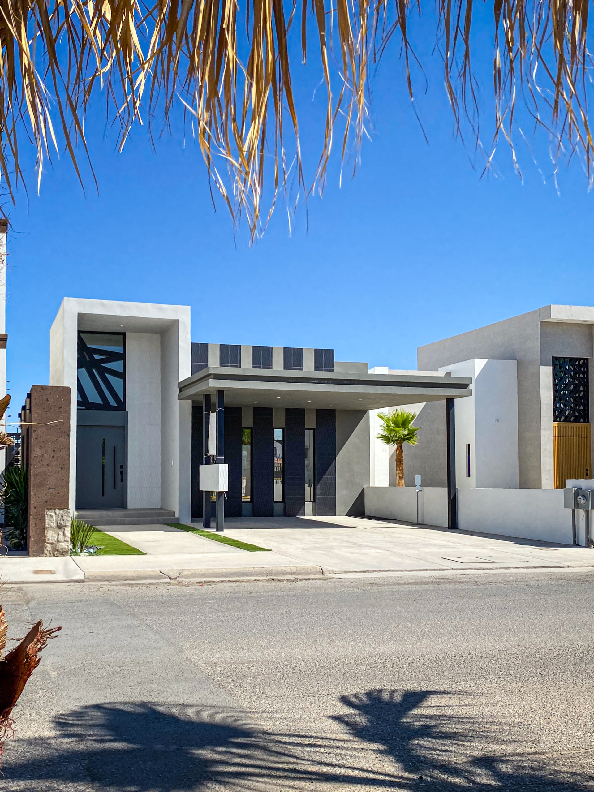 Fachada con detalles con celosía